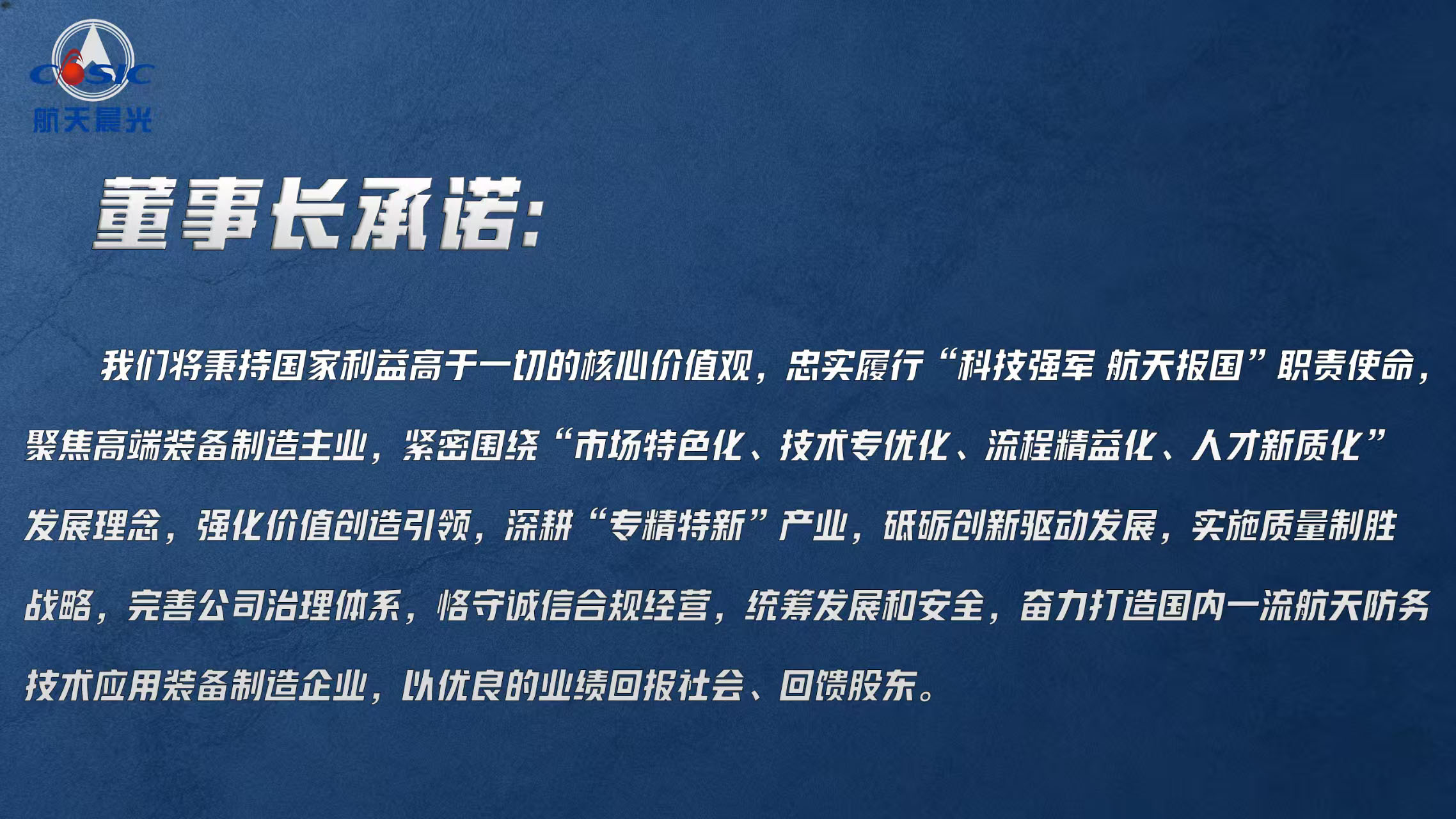 航天晨光股份有限公司  >  關于我們  >  董事長承諾